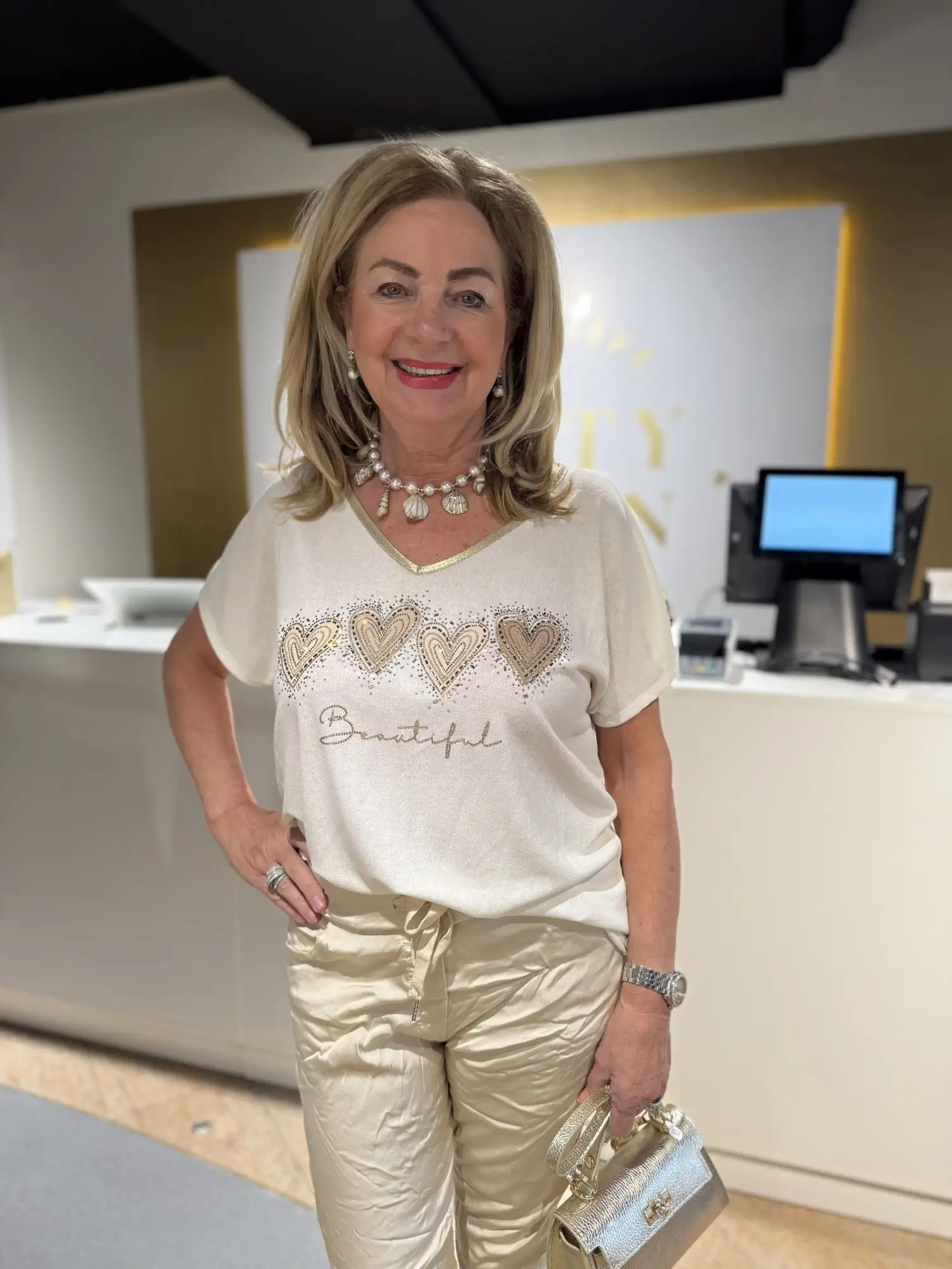 One Size Shirt met glitter opdruk