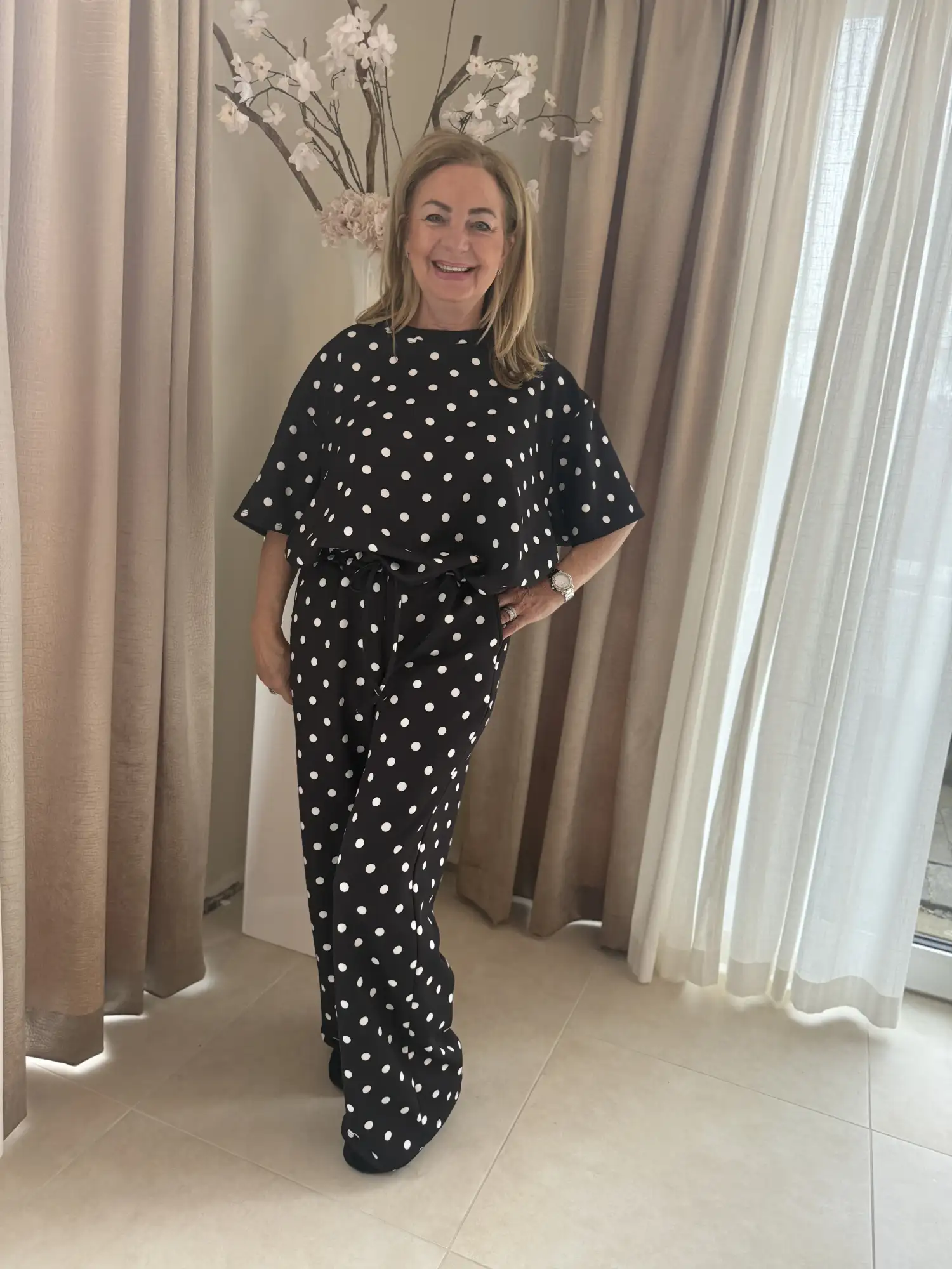 One Size set met ballon top en elastiek in de boord van de broek met een touwtje aan te snoeren. Twee delig