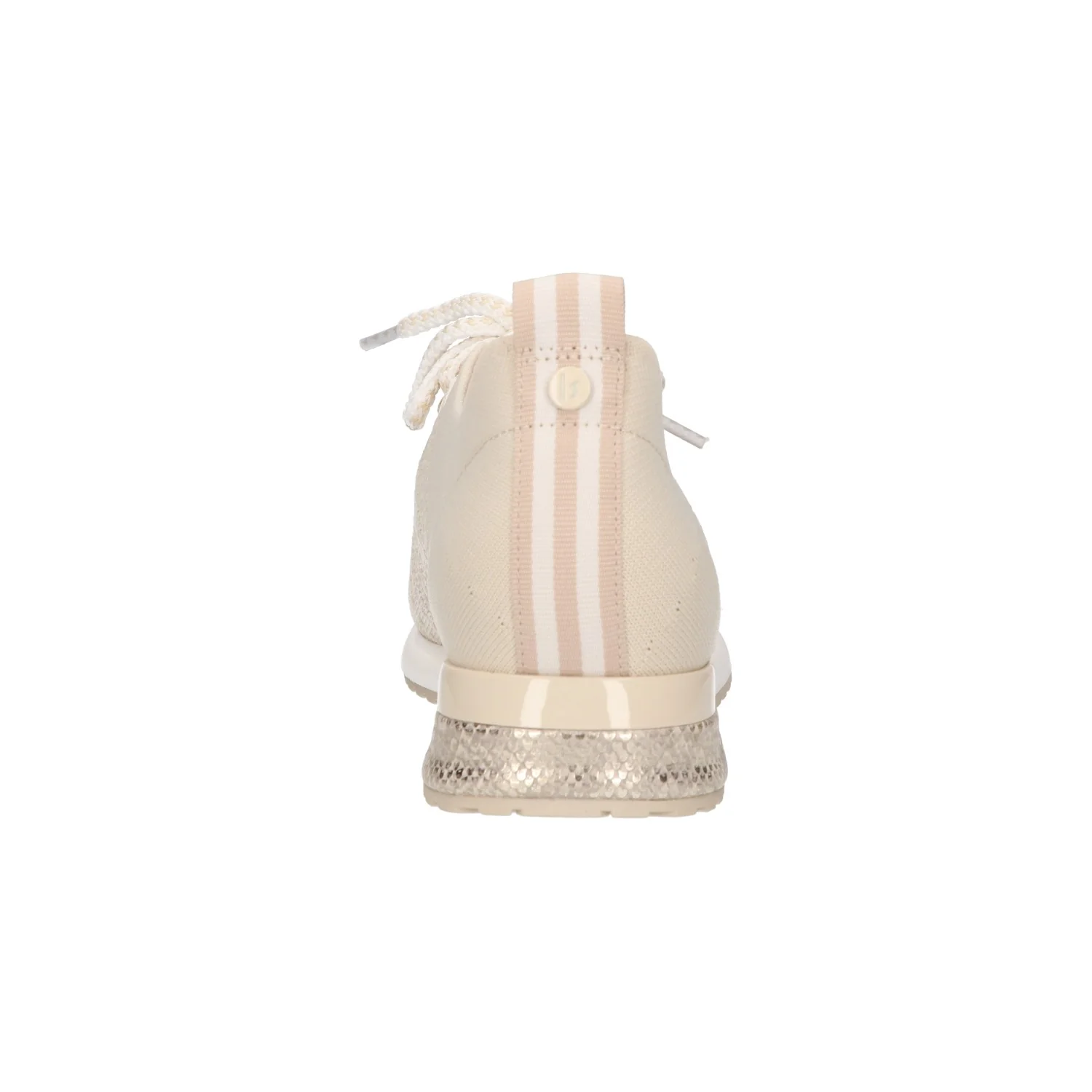 Deze sportieve sneakers zijn een echte musthave. Het buitenmateriaal is gemaakt van nylon. De schoen heeft een textiele binnenvoering die voldoende ondersteuning biedt tijdens het lopen. De frisse kleur zorgt ervoor dat deze moderne sneaker een echte eyecatcher is. De gaatjes aan de zijkanten en de streepjes op de veters zorgen voor een speels effect. Op de hiel zit een gestreepte rand met bovenaan een aantreklus. Op de achterkant van de witte rubberen zool zit een vlak met print. De schoen is voorzien van een vast voetbed, een vetersluiting en een rubberen loopzool.
