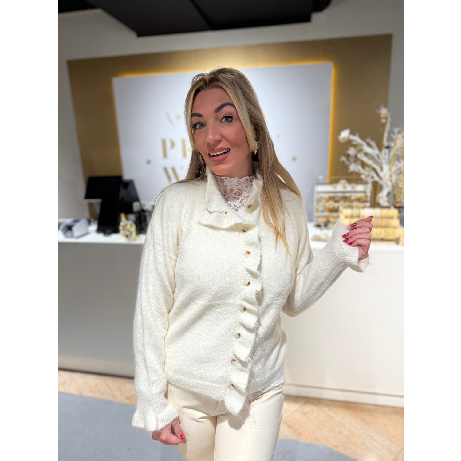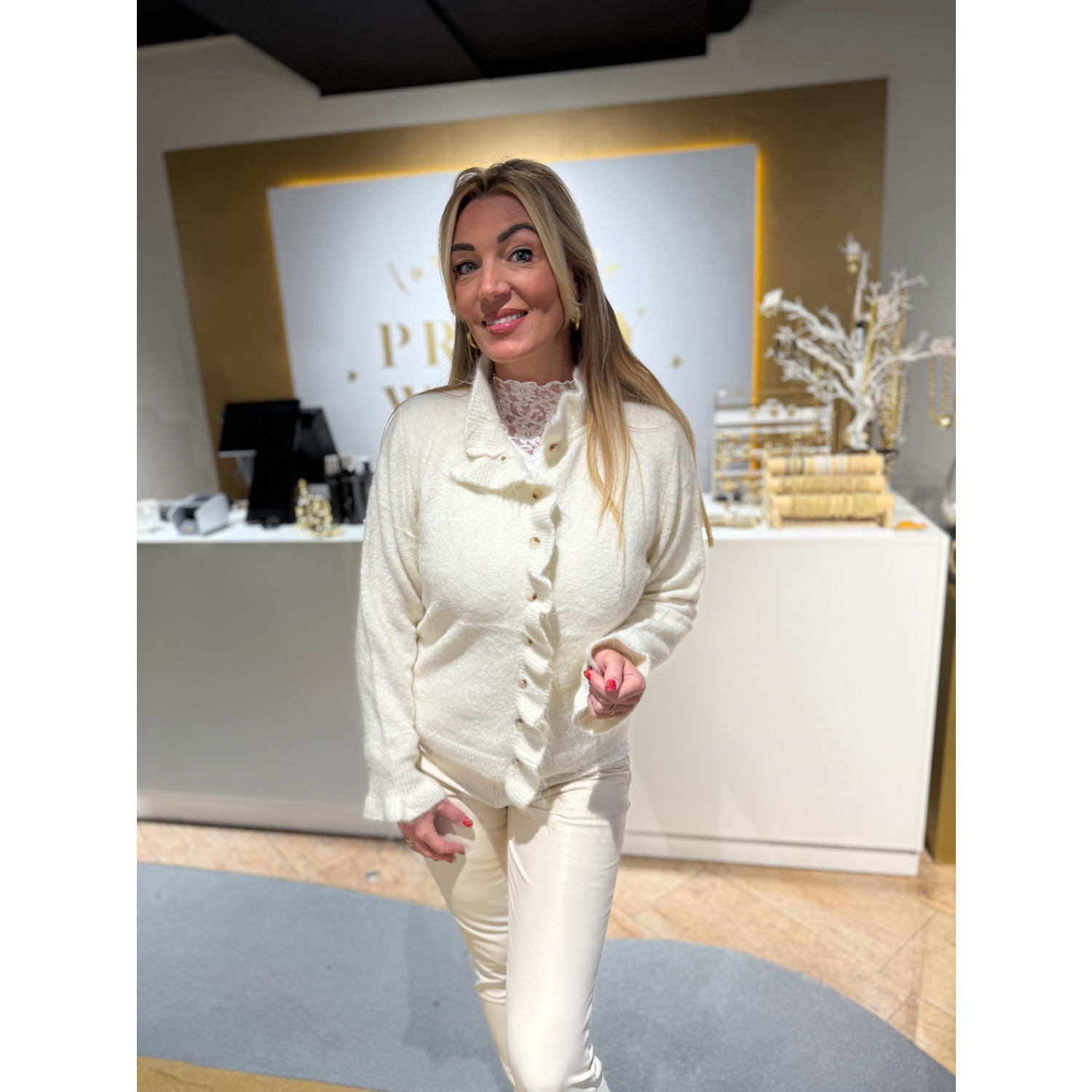 Vest Met Roussle ook langs de mouwen en knoopjes.
