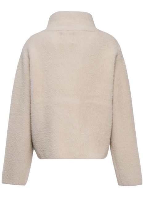 Jack van het merk Rino & Pelle met lange mouwen, een staande kraag en double breasted knoopsluiting. Het voorpand is voorzien van twee steekzakken. Het jack wordt gekenmerkt door de fluffy stof.