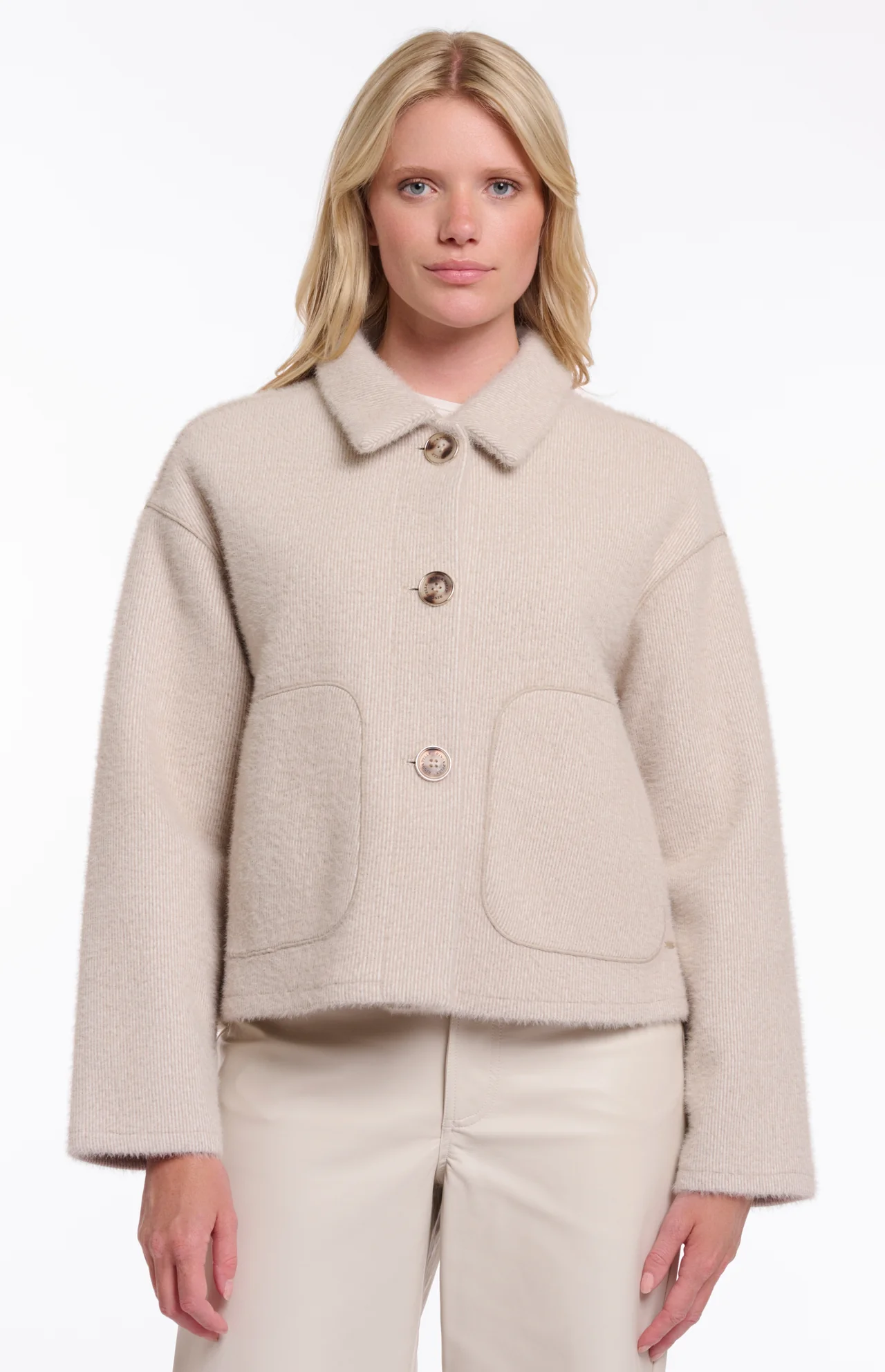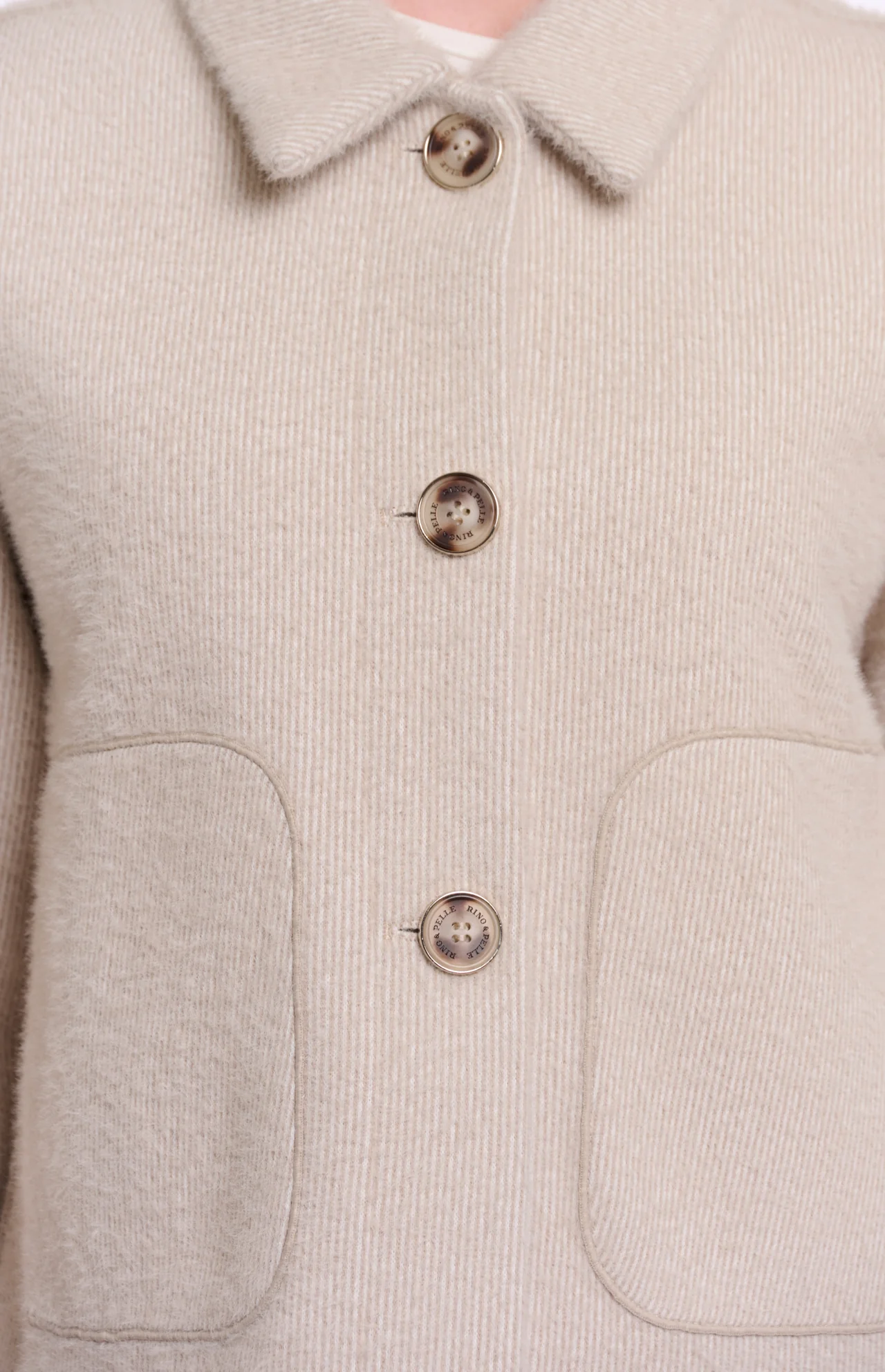 Het Jacket Esia Stone Snow van Rino & Pelle is een korte, zachte jas met een moderne, boxy pasvorm. De rijke wol-mix geeft een luxe, knusse uitstraling, terwijl de grote knopen en opgestikte zakken zorgen voor een clean en eigentijds silhouet. Een tijdloos item dat moeiteloos combineert met zowel casual als klassieke outfits.