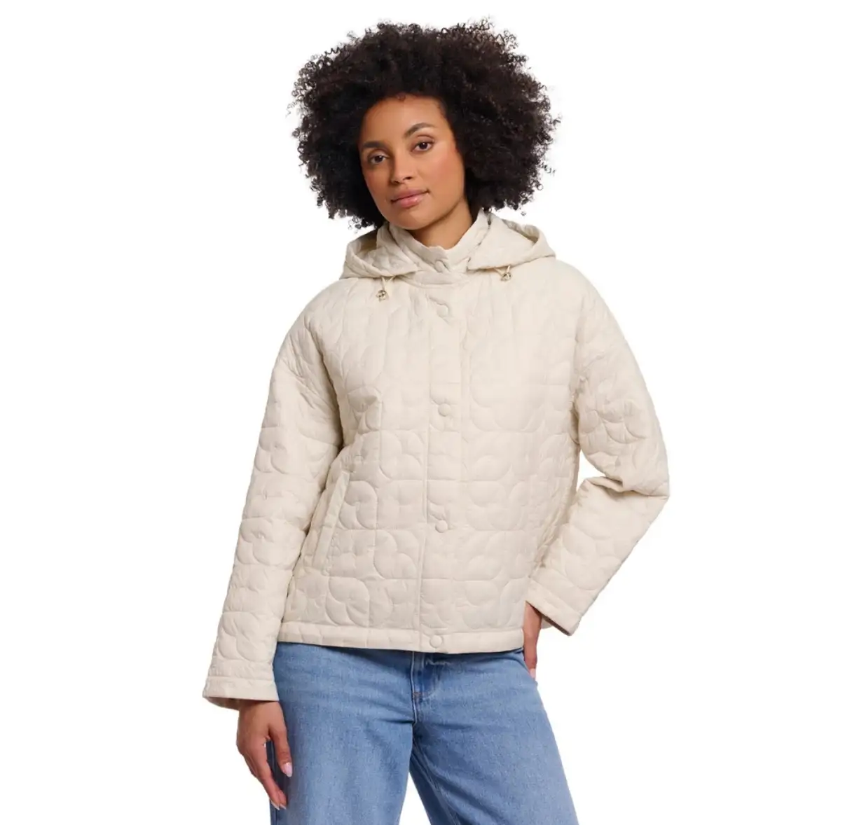 Deze jas van Rino & Pelle valt op door het bijzondere doorgestikte dessin met organische vormen. Het licht gewatteerde ontwerp met vaste capuchon en drukknoopsluiting biedt comfortabele warmte in een recht, modern silhouet. Steekzakken in de zijnaden maken de jas praktisch en stijlvol voor elke dag.