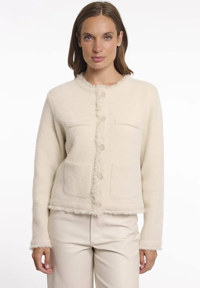 Vest Vanna van Rino & Pelle is een elegant dames vest met een ronde hals, knoopsluiting en lange mouwen. De voorzijde heeft praktische zakken. De slimfit pasvorm en verfijnde stijl maken dit vest geschikt voor een nette gelegenheid, ideaal voor een stijlvolle look.