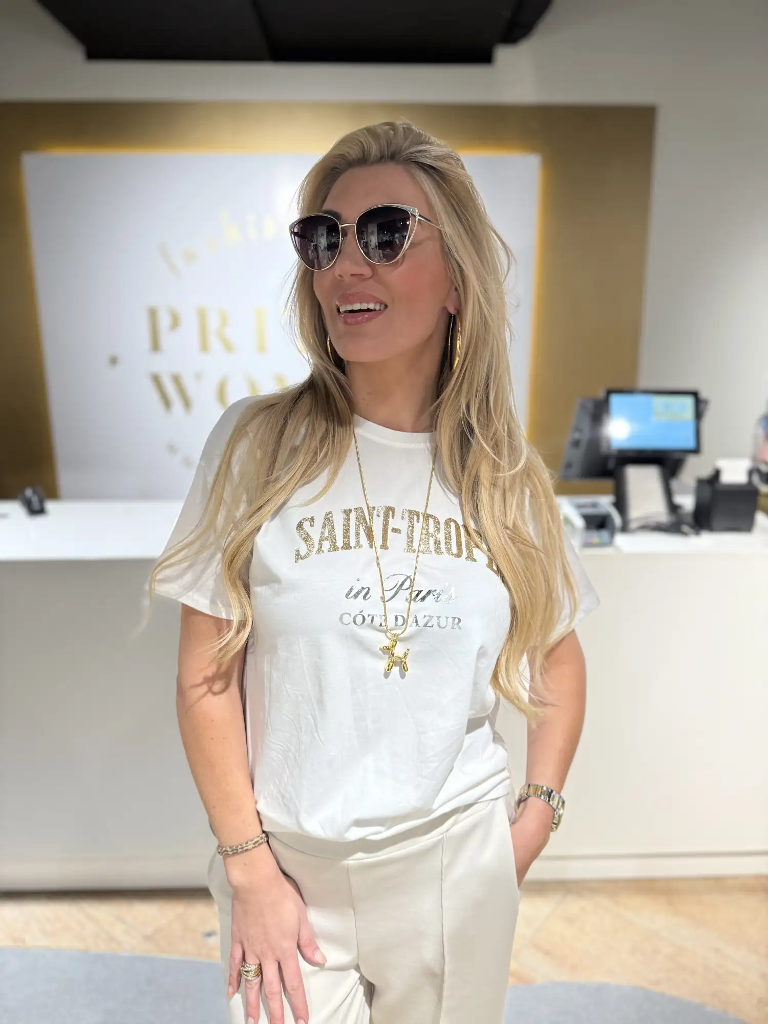 One Size top met opdruk goud en zilver